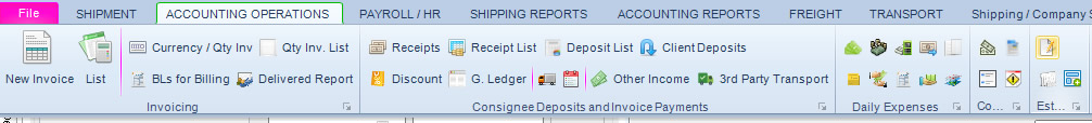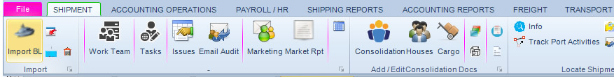 Software Features APP FEATURES A List of App Features Cargo Shipment Import Shipment Import Documents entered, managed and Tracked by the Solution. Export Shipment Manage your Export Shipment from Empty Container Loading to Ship Side Consolidation Manage the consolidation or Groupage for several consignees in one container. Finance / Accounting Estimate / Invoice Generating and Managing Invoices or Estimates Receipts / Deposits Accept customer payments on invoices and deposit payments Customer Expenses Manage Expenses incurred on customer Operations Company Expenses Manage Daily Office and Staff Expenses HR / Payroll Payroll Management Process monthly payroll and generate the following reports Income Tax Report Social Security and other provident funds reports Contributions report Employee Pay slips Bank Payment List Human Resource Have all information on employees well documented Manage all employee details - CVs, Educational and Professional Qualifications Leave management – Employee can apply for leave, authorized leaves are added to the Leave Calendar Manage Public holidays Document Management Document Management Scan and store Documents attached to the Bill of Lading Store Document referenced with the BL number for easy retrieval Share documents across the company Reprint documents